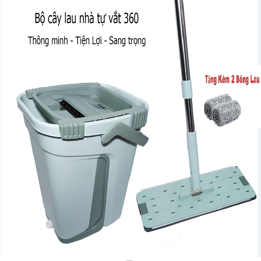 [Thùng Lớn] Bộ lau nhà (tặng 2 bông lau) 360 độ cao cấp tự vắt phẳng chữ nhật thế hệ mới