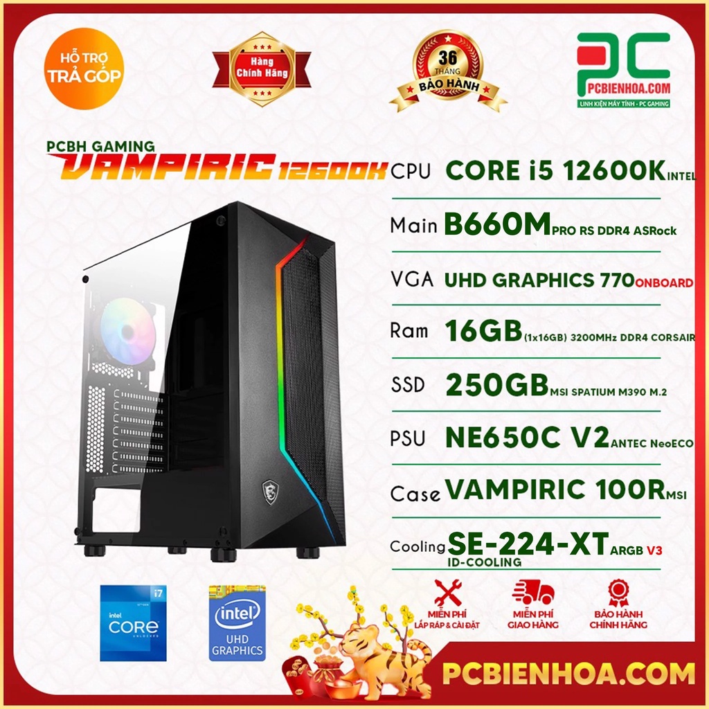 Máy tính & Laptop > Máy Tính Bàn > Bộ Máy Tính Bàn || Thùng máy tính Gen 12 PCBH VAMPIRIC 12600K ( CORE I5 12600K / B660M / 16GB / 250GB ) 36TCòn hàng