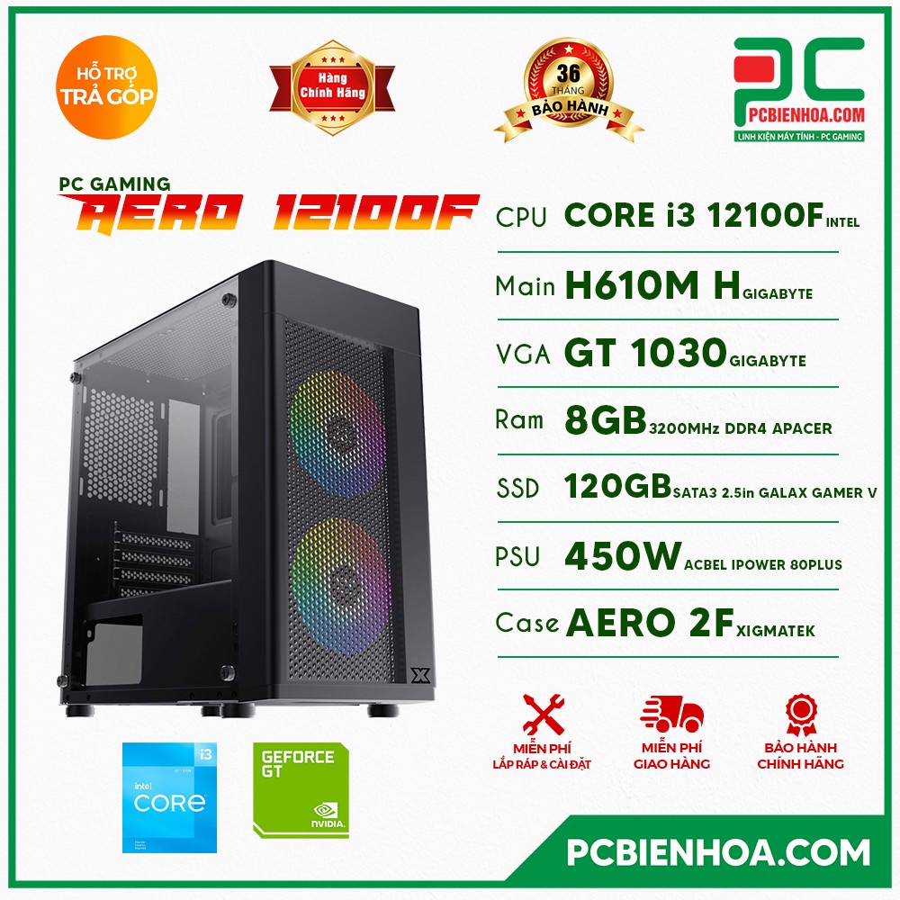 Máy tính & Laptop > Máy Tính Bàn > Bộ Máy Tính Bàn || Thùng máy tính PCBH Gaming I3 12100F/H610M/8G/120G/450W/1030 2G chính hãngCòn hàng