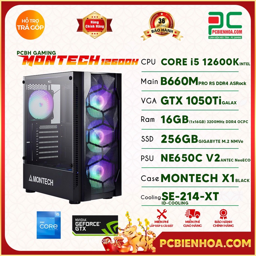 Máy tính & Laptop > Máy Tính Bàn > Bộ Máy Tính Bàn || Thùng máy tính - PCBH GAMING MONTECH 12600K ( CORE I5 12600K / B660M / GTX1050TI / 16GB / 256GB ) 36TCòn hàng