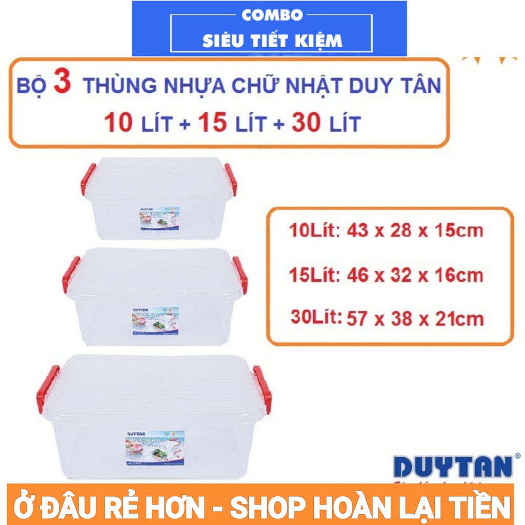 Thùng nhựa duy tân trong suốt BỘ 3 (10L + 15L + 30L)