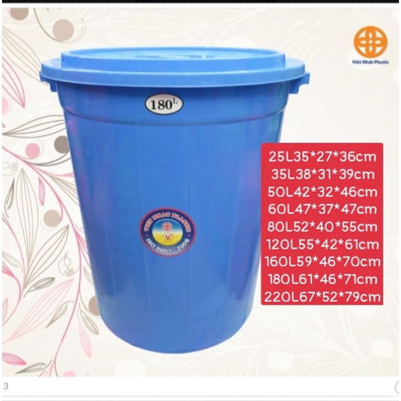 Giới thiệu THÙNG NHỰA TRÒN CÓ NẮP ĐẬY VIỆT NHẬT CÁC CỠ 25L/35L/50L/60L