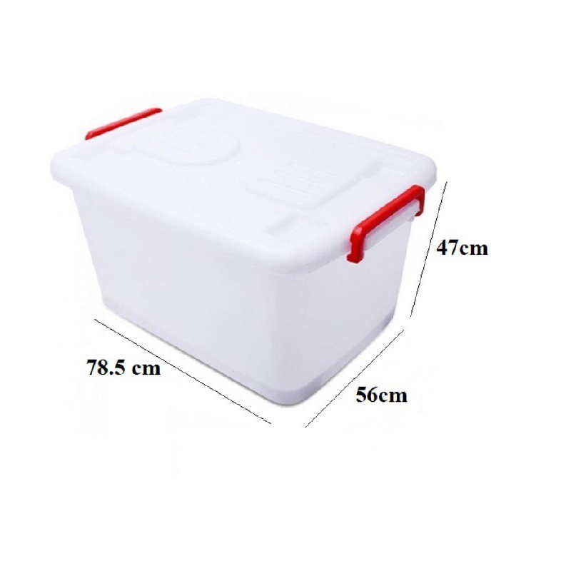 Nắp đậy kín chắc giúp ngăn ngừa bụi bẩn, vi khuẩn xâm nhập hiệu quả, đồng thời giữ cho đồ đạc bên trong không bị rơi đổ ra ngoài. Hai bên thân thùng có quai xách dày dặn và bánh xe dưới đế thùng giúp bạn bưng bê, dễ dàng di chuyển đến bất kỳ nơi nào muốn sử dụng.