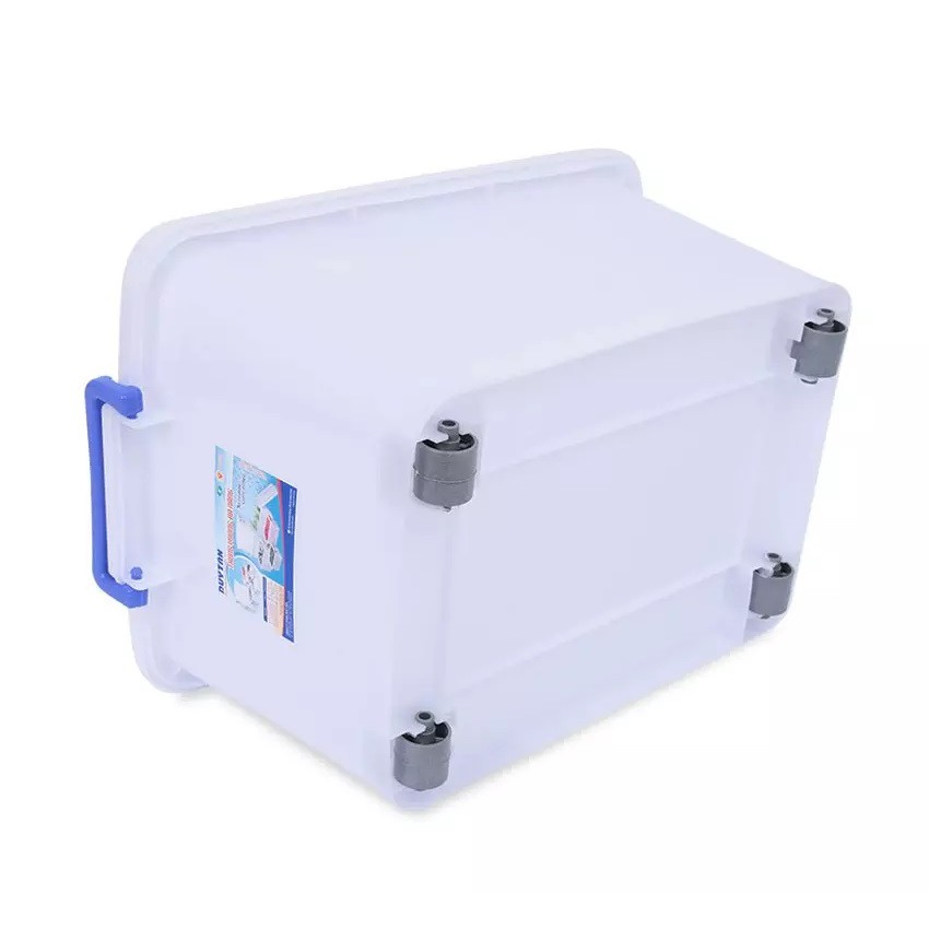 Nắp đậy kín chắc giúp ngăn ngừa bụi bẩn, vi khuẩn xâm nhập hiệu quả, đồng thời giữ cho đồ đạc bên trong không bị rơi đổ ra ngoài. Hai bên thân thùng có quai xách dày dặn và bánh xe dưới đế thùng giúp bạn bưng bê, dễ dàng di chuyển đến bất kỳ nơi nào muốn sử dụng.