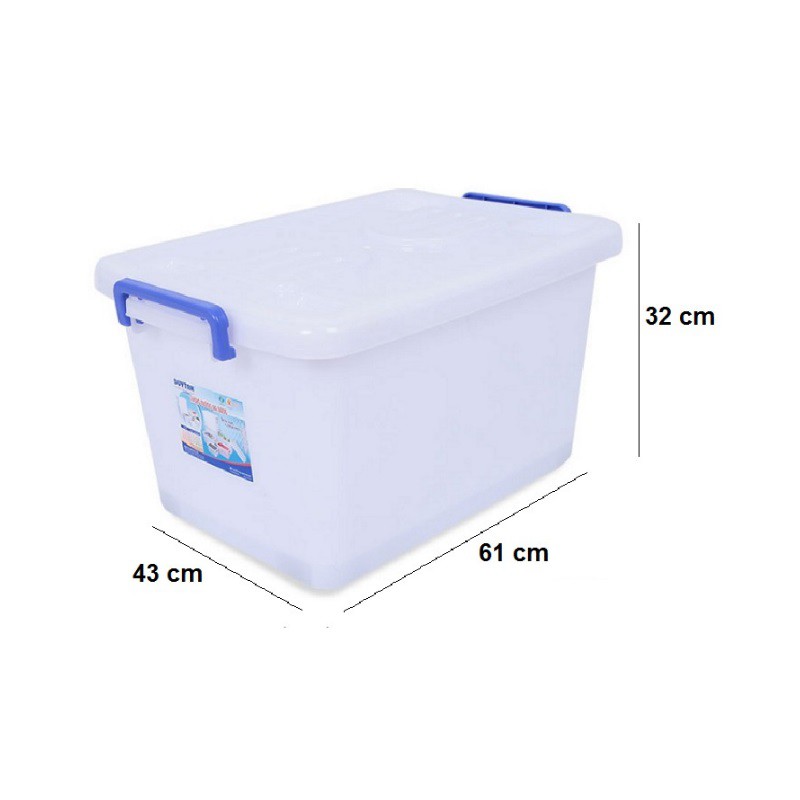 Nắp đậy kín chắc giúp ngăn ngừa bụi bẩn, vi khuẩn xâm nhập hiệu quả, đồng thời giữ cho đồ đạc bên trong không bị rơi đổ ra ngoài. Hai bên thân thùng có quai xách dày dặn và bánh xe dưới đế thùng giúp bạn bưng bê, dễ dàng di chuyển đến bất kỳ nơi nào muốn sử dụng.