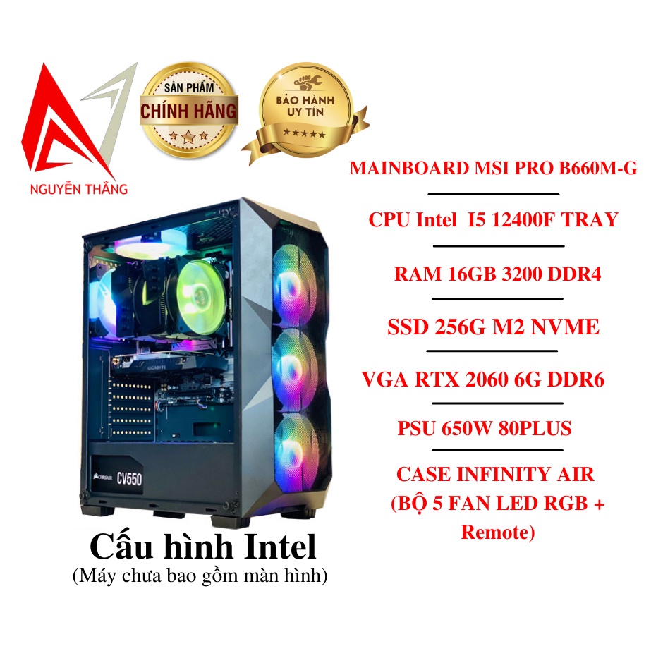 Thùng PC GAMING ALDER LAKE I5 THẾ HỆ 12 ( B660 - I5 12400F - RAM 16G - RTX2060 )