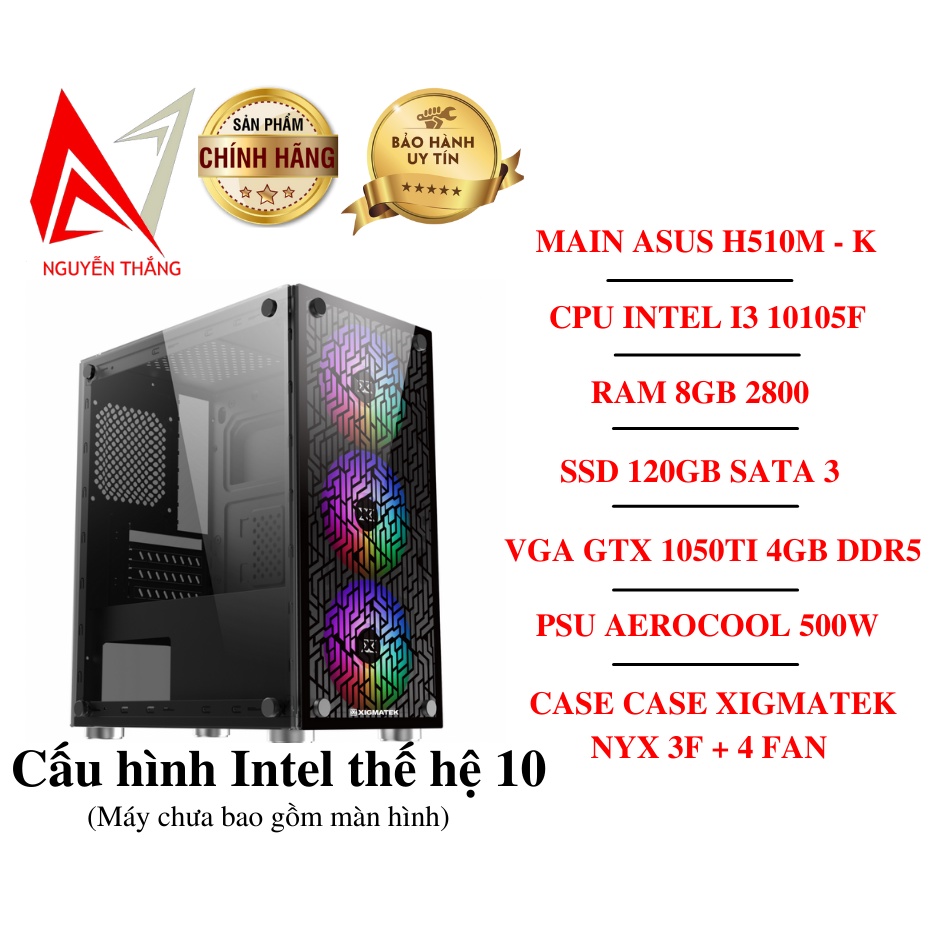Thùng PC GAMING I3 THẾ HỆ 10 COMET LAKE ( H510 - I3 10105F - RAM 8G - SSD 120G - GTX1050TI 4GB - PSU 500W)