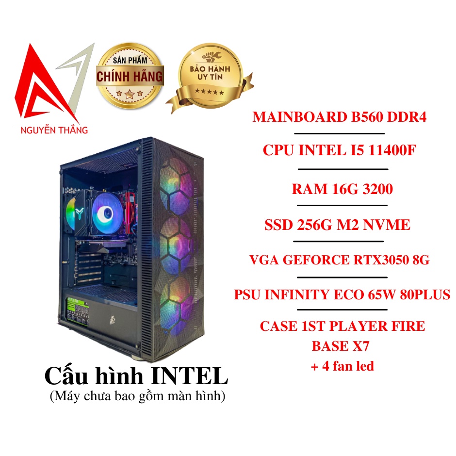 Thùng PC GAMING I5 THẾ HỆ 11 ( B560 - I5 11400F - 16G - RTX3050 ) new chính hãng
