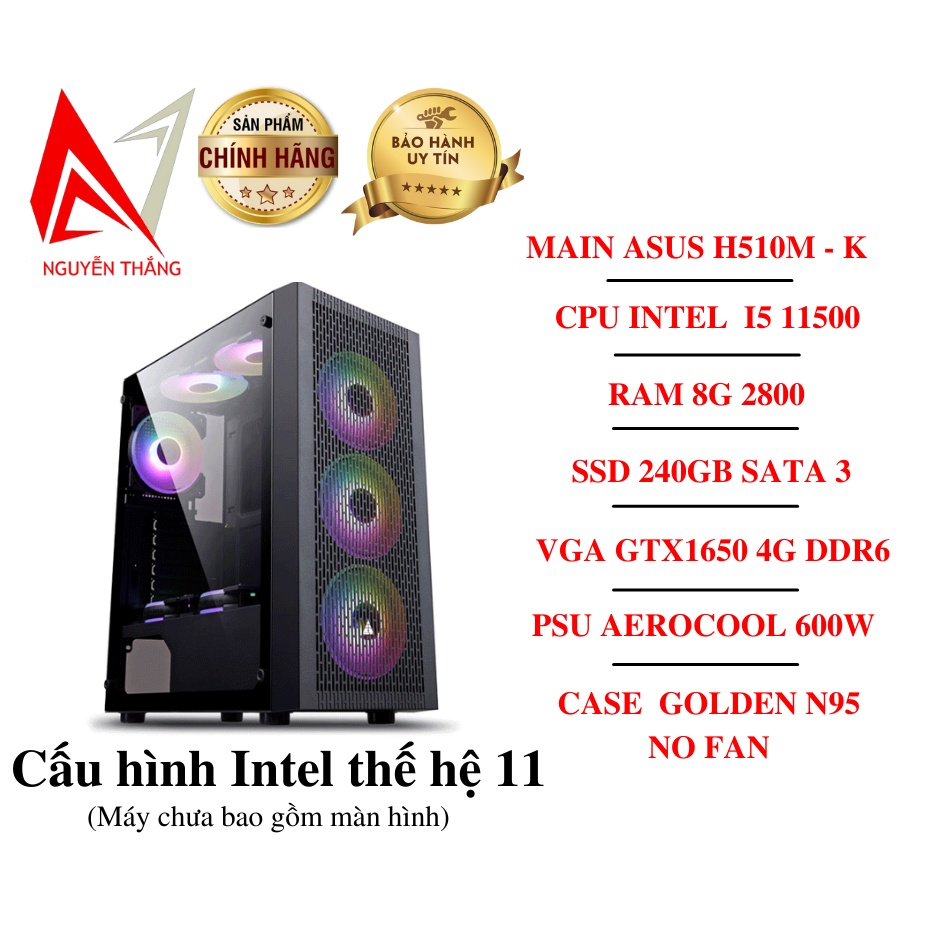 Thùng PC GAMING NTC VIP1 ( H510 - I5 11500 - 8GB - GTX1650 )