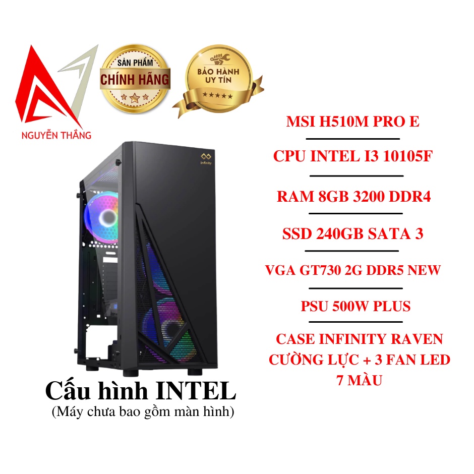 Máy tính & Laptop > Máy Tính Bàn > Bộ Máy Tính Bàn || [Mã ELHASALE1TR giảm 5% đơn 3TR] Thùng PC NT RAVEN ( H510 - I3 10105F - 8G - GT730 2GD5 ) NEW CHÍNH HÃNGCòn hàng