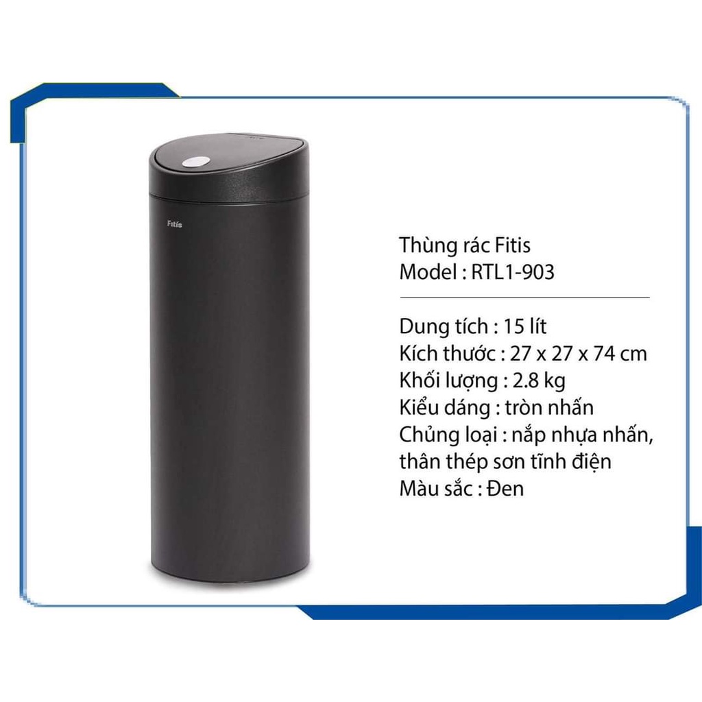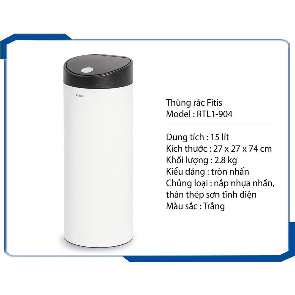 Thùng rác Fitis Premium RTL1 (15 lít) có vỏ thùng được làm bằng inox được bao phủ bởi lớp nano bền bỉ và sang trọng. Khay đựng bên trong có thể tháo rời tiện lợi, giúp việc lấy rác ra khỏi thùng dễ dàng sản phẩm ứng dụng công nghệ nắp kháng khuẩn E 99% đảm bảo nắp thùng rác luôn sạch khuẩn. Ngăn đựng sáp chống côn trùng bên dưới nắp thùng đảm bảo thùng rác và không gian sống luôn sạch sẽ, hợp vệ sinh. Nút cài túi rác làm tối ưu hóa thao tác thay rác và đảm bảo tính thẩm mỹ cho sản phẩm và mái ấm của bạn.Giá XKR
