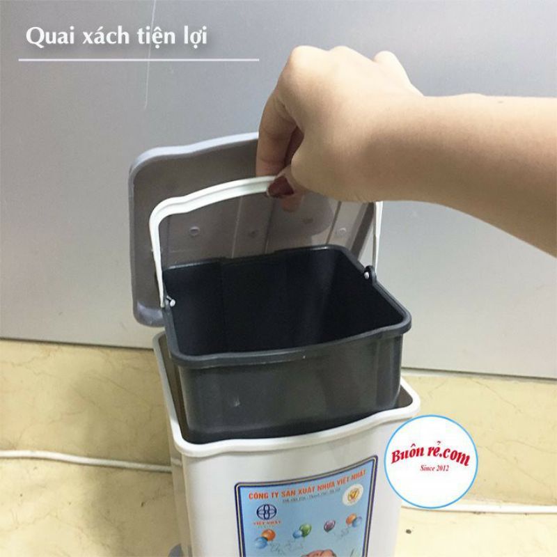 - Thùng rác bật nắp Nhựa Việt Nhật được thiết kế xô trong và vỏ ngoài tách rời giúp bạn dễ dàng vệ sinh cũng như vứt đổ rác