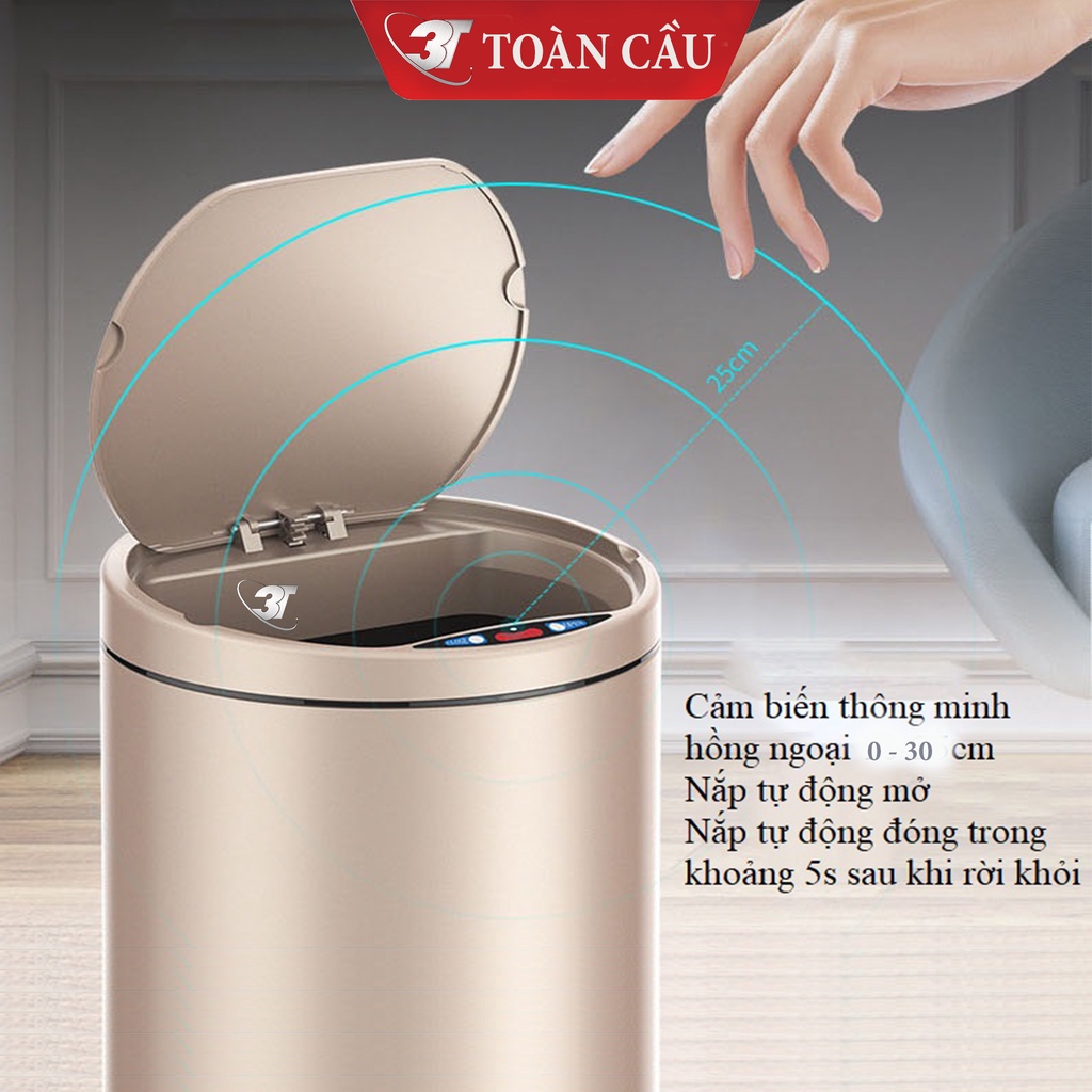Thùng rác cảm biến thông minh 3 chế độ mở cửa, vật liệu INOX dung tích 12L sử dụng sạc điện