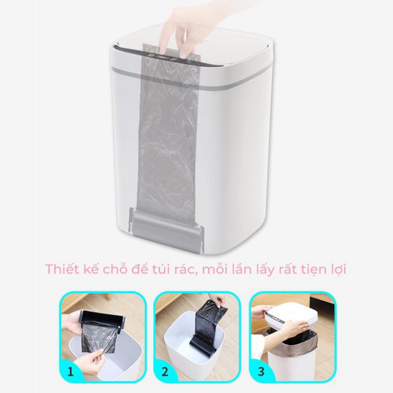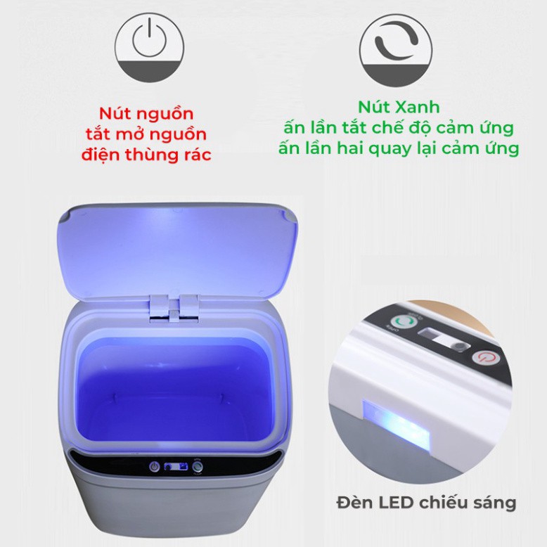 Thùng Rác Cảm Ứng Thông Minh Có Nắp Đóng Mở Tự Động Có Hộp Đựng Túi Rác Tiện Lợi Đèn Chiếu Sáng Ban Đêm_Vimart
