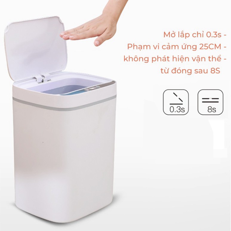 Thùng rác thông mình có khả năng cảm ứng tốt, tự động mở nắp khi cách người khoảng 25cm, sau 6 giây nếu không có người sử dụng sẽ tự động đóng nắp, giữ gìn vệ sinh sạch sẽ