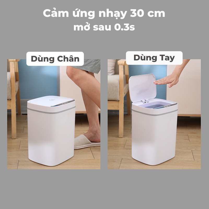Thiết kế cảm ứng giúp bạn không cần chạm tay mở nắp, hạn chế các vi khuẩn có hại gây bệnh