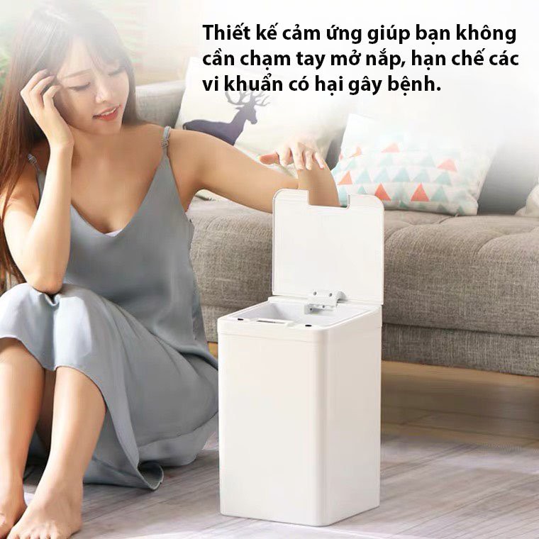 - Thiết kế cảm ứng giúp bạn không cần chạm tay mở nắp, hạn chế các vi khuẩn có hại gây bệnh