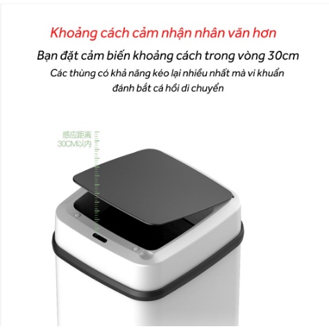 - Thùng rác thông mình có khả năng cảm ứng tốt, tự động mở nắp khi cách người khoảng 25cm, sau 6 giây nếu không có người sử dụng sẽ tự động đóng nắp, giữ gìn vệ sinh sạch sẽ.