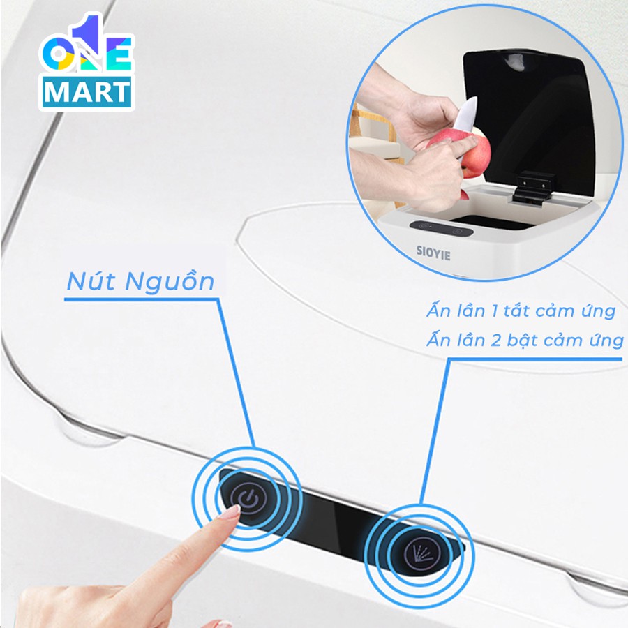 Thùng rác cảm ứng thông minh Sioyie cảm ứng cực nhạy chỉ trong 0.2s dung tích 16L tặng kèm túi đựng rác tặng kèm pin