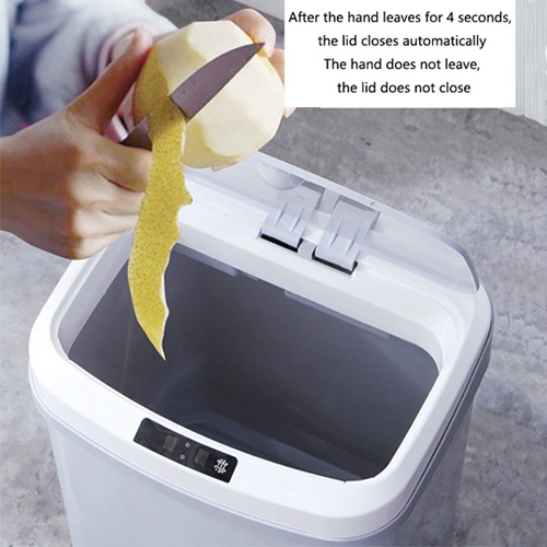 - Nắp thùng mở tự động nhờ công nghệ cảm biến, đóng lại 5s sau khi bỏ rác vào thùng