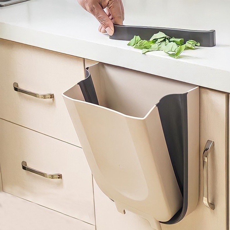 Thùng Rác Cánh Tủ Gấp Gọn Thông Minh Bằng Nhựa Dẻo Màu Nâu - FreeShip toàn quốc