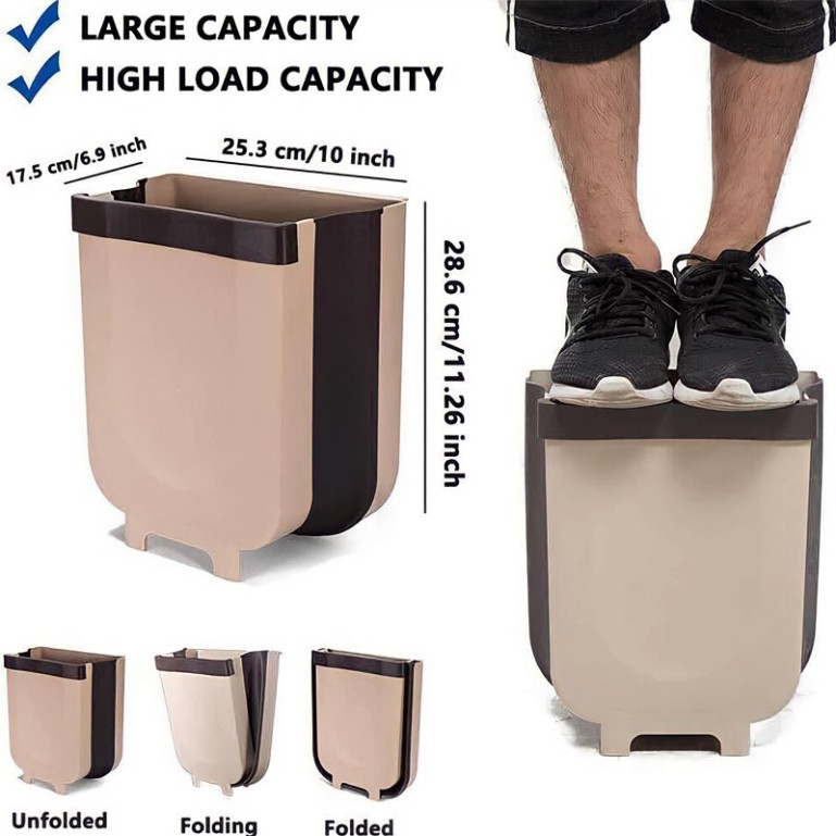 - Thùng rác độc đáo có thể gập gọn khi không sử dụng và mở ra khi dùng