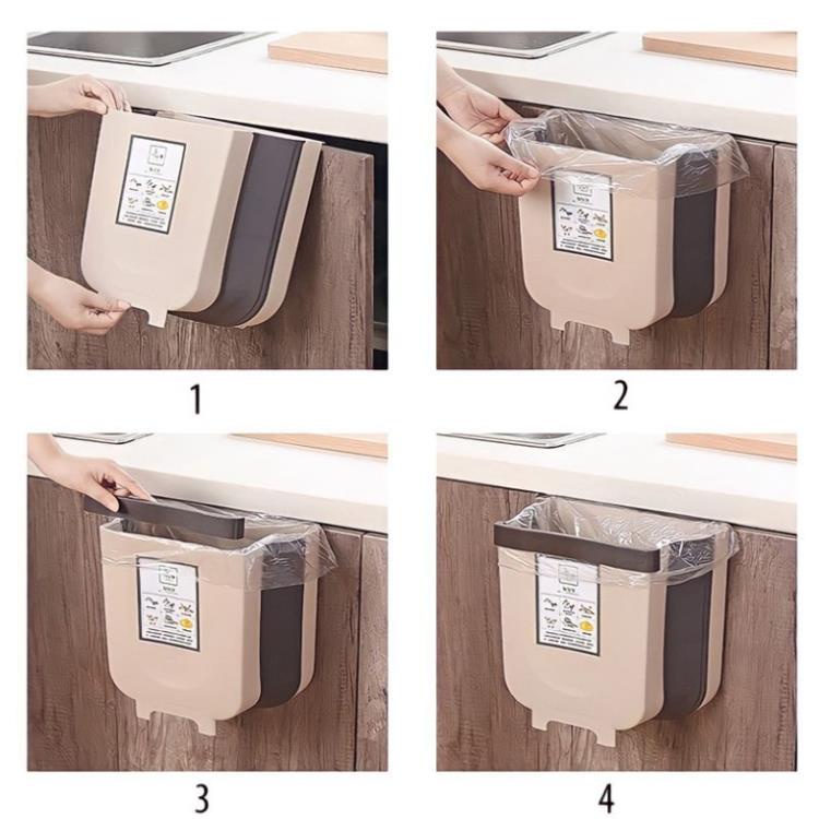 - Thùng rác độc đáo có thể gập gọn khi không sử dụng và mở ra khi dùng