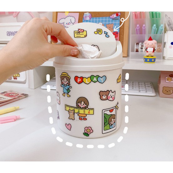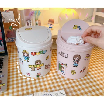 Thùng rác có nắp đậy mini để bàn tặng kèm miếng dán sticker