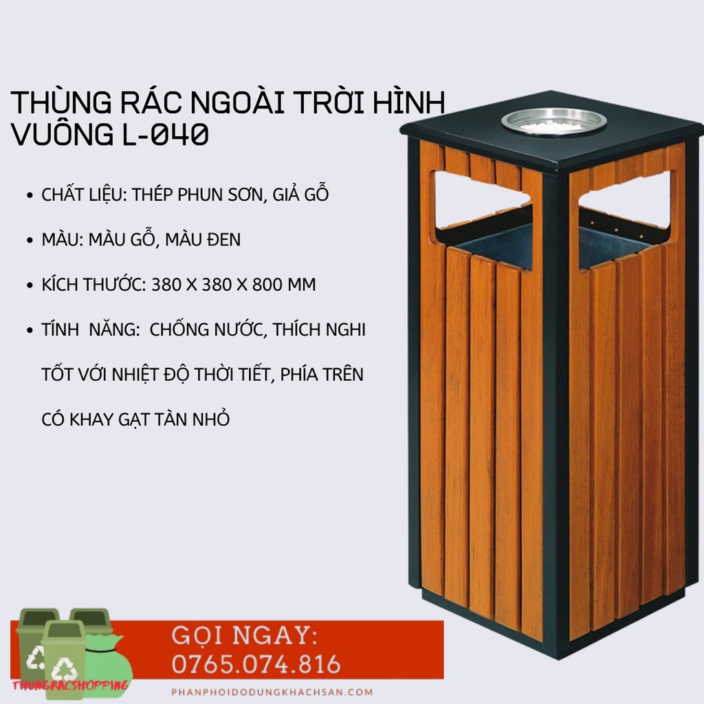 THÔNG TIN SẢN PHẨM THÙNG RÁC CÔNG CỘNG NGOÀI TRỜI HÌNH VUÔNG L-040• Kích thước: 380 X 380 X 800 MM