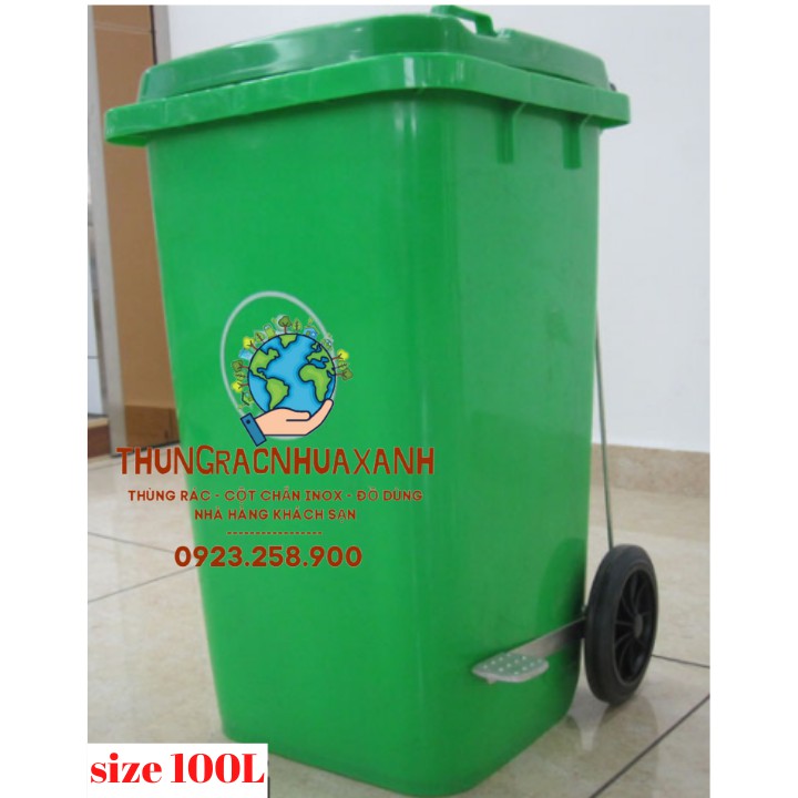 Thùng rác nhựa HDPE 100 lít với thiết kế có bàn đạp chân , có nắp đậy kín không bốc mùi hôi ra ngoài ,có 2 bánh xe linh hoạt dễ dàng di chuyển , tiết kiệm sức lao động , thích hợp đặc những nơi như khuôn viên khu công nghiệp , trường học , chung cư , khu vui chơi giải trí ....