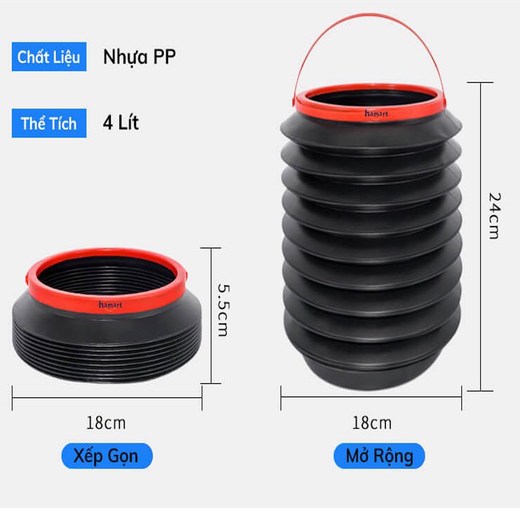 - Thùng rác đa năng Hamart gấp gọn nhỏ gọn và với thể xách theo bên người, có thể gấp gọn để tiết kiệm không gian lúc không dùng đến