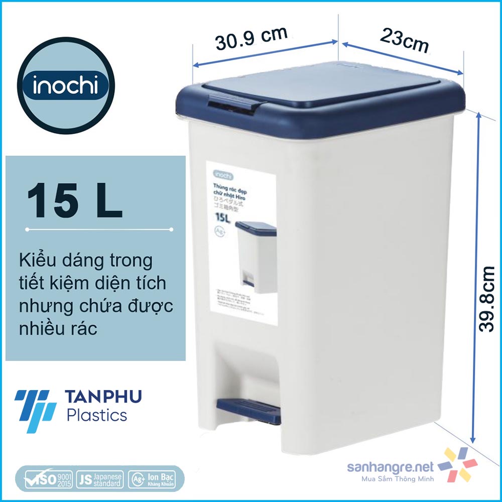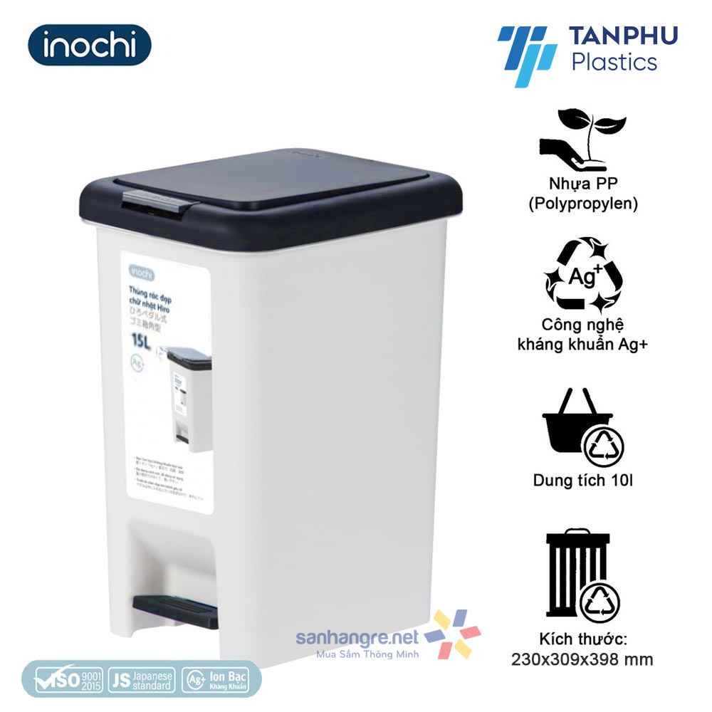 Thùng rác đạp chân chữ nhật Inochi Hiro 15L xuất Nhật - Kháng khuẩn, khử mùiGóc bếp, góc nhà, góc phòng tắm cảu gia đình sẽ sạch đẹp và tiện nghi với Thùng rác Inochi Hiro kháng khuẩn Ag+ Inochi. Vừa tiện dụng vừa có tác dụng kháng khuẩn - là một trong những sản phẩm được ưa chuộng của các bà nội trợ tại Nhật