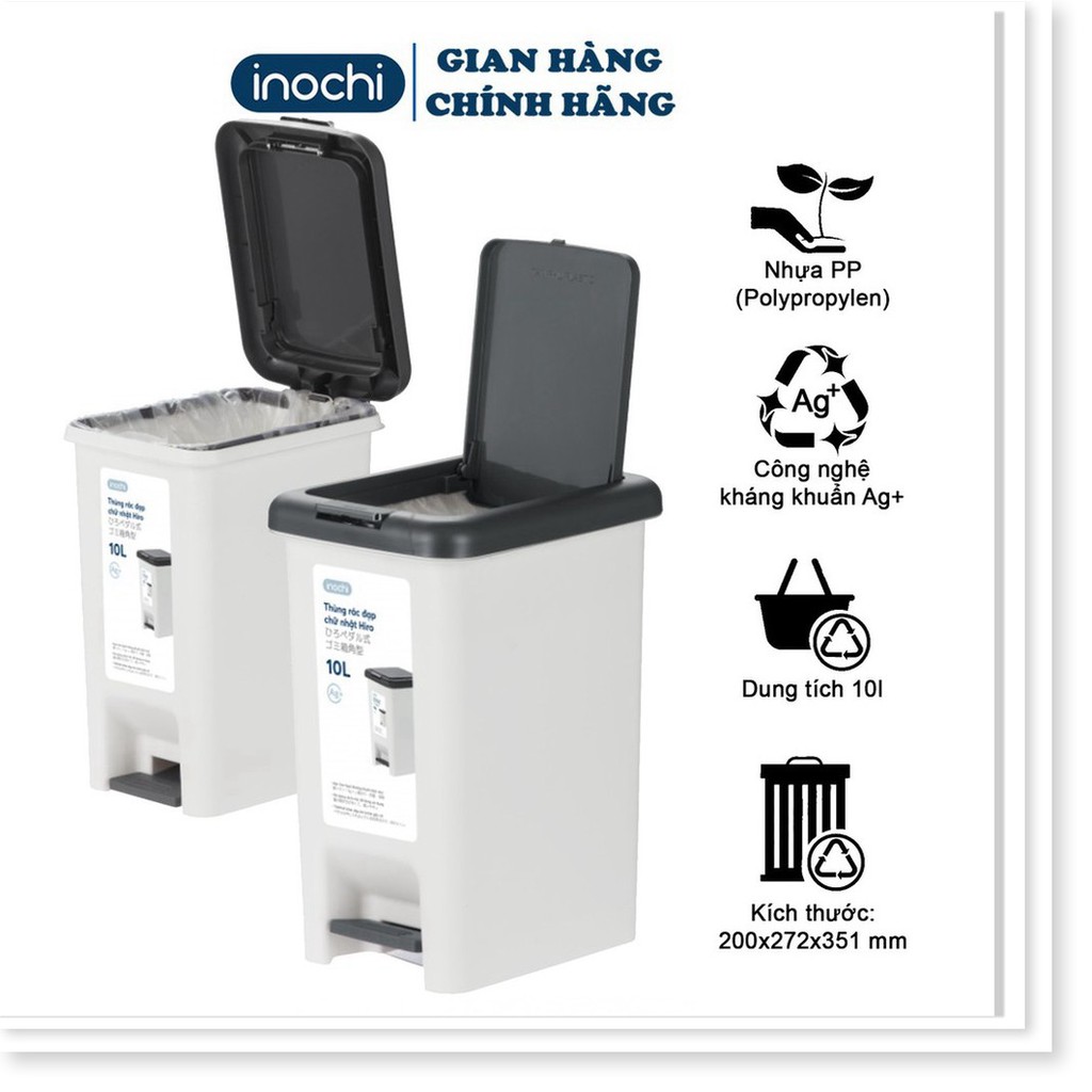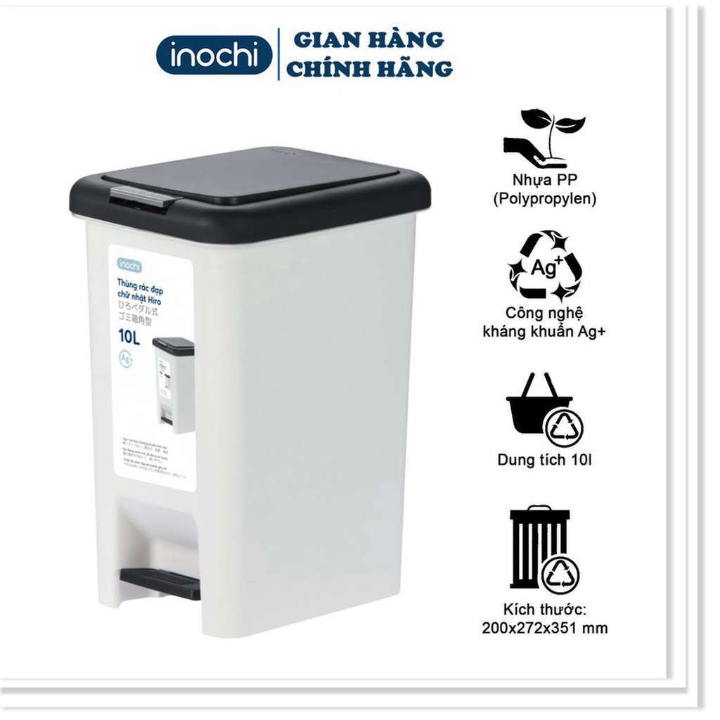[CHÍNH HÃNG] Thùng Rác Mini -Nhựa Đạp Chân Nắp Đậy Chữ Nhật HIRO INOCHI 10 Lít Làm Sọt Rác Văn Phòng , Gia Đình TRAC10Mã SP: HIN.RACN.0010