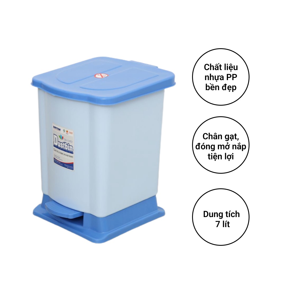 Sản phẩm được làm từ nhựa PP bền bỉ, khả năng chịu nhiệt và chịu lực tốt, dùng bền lâu, với thiết kế và màu sắc đơn giản, dễ sử dụng cho mọi không gian.Tích hợp chân gạt giúp việc mở/đóng nắp nhanh chóng và vệ sinh.