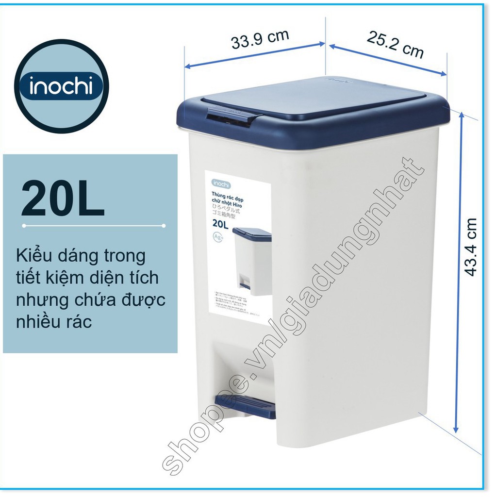 Thùng rác đạp chữ nhật Hiro 20L cao cấp nhật Bản