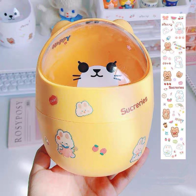 Thùng rác để bàn có nắp mini dễ thương dễ thương hình gấu thùng rác hộp đựng đồ cô gái hộp đựng bút -shop8868