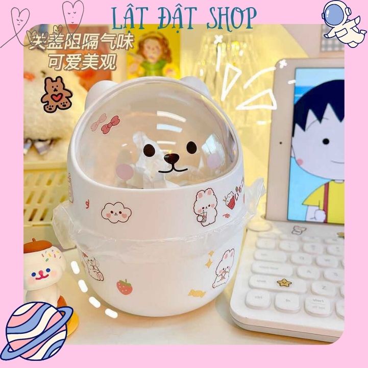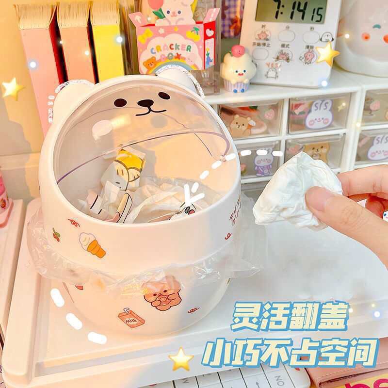 Nhà cửa & Đời sống > Dụng cụ chăm sóc nhà cửa > Thùng rác || Thùng rác để bàn có thể xoay - Thùng rác mini để bàn nắp gập hoạ tiết gấu/mèoCòn hàng