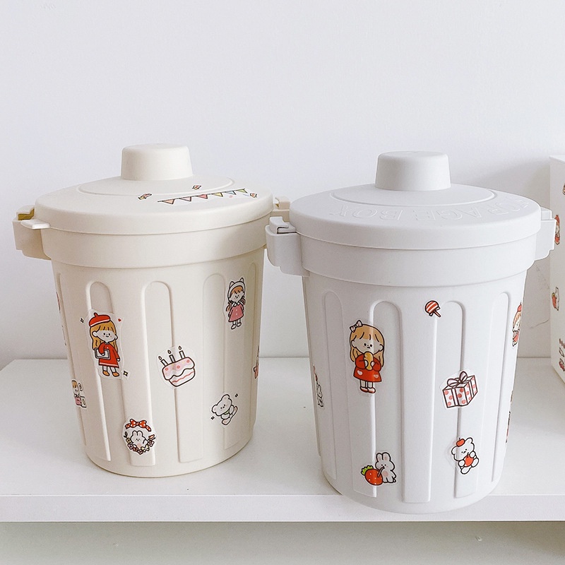 Thông tin sản phẩm:🐇Thùng rác để bàn decor có nắp đậy tiện dụng xinh xắn 🐇