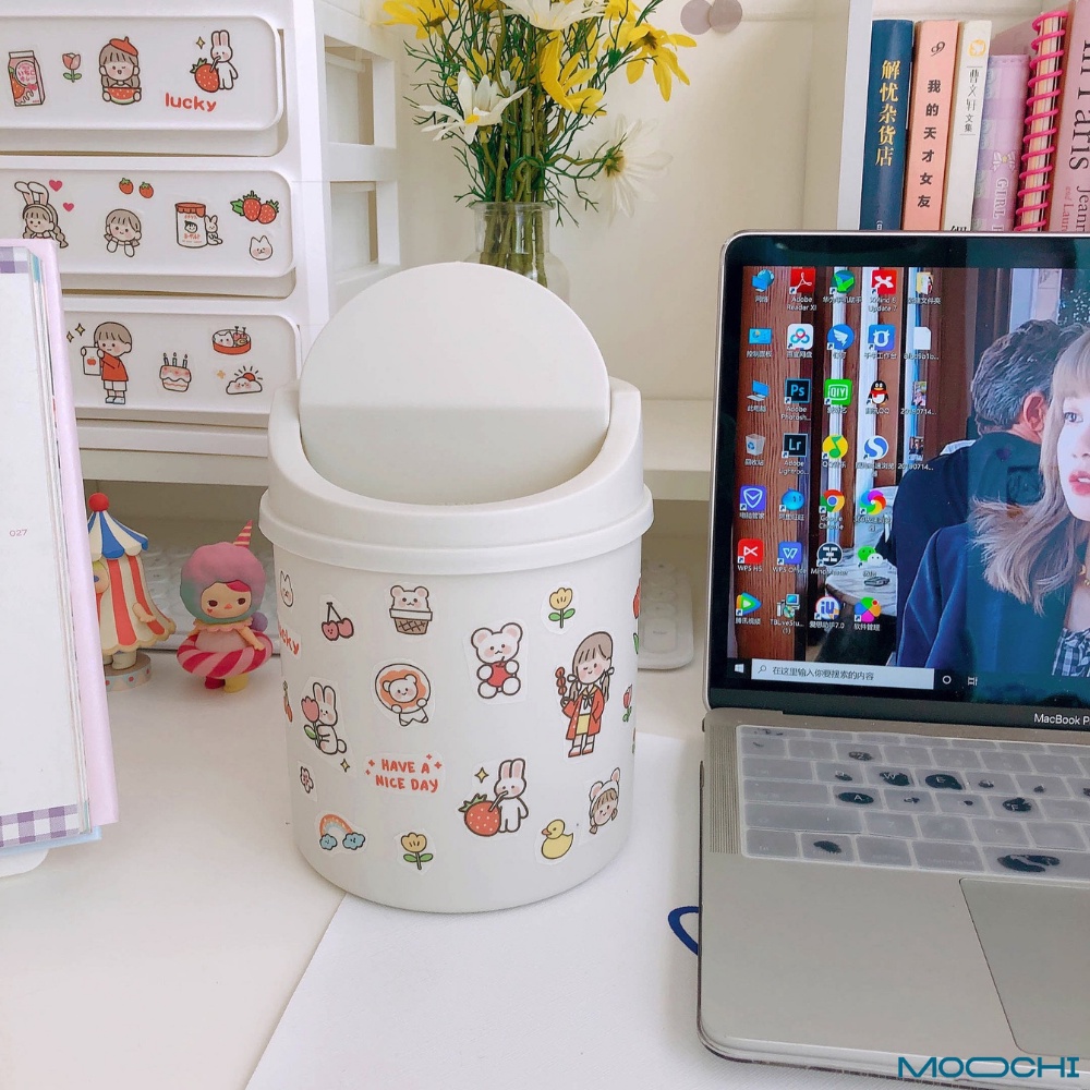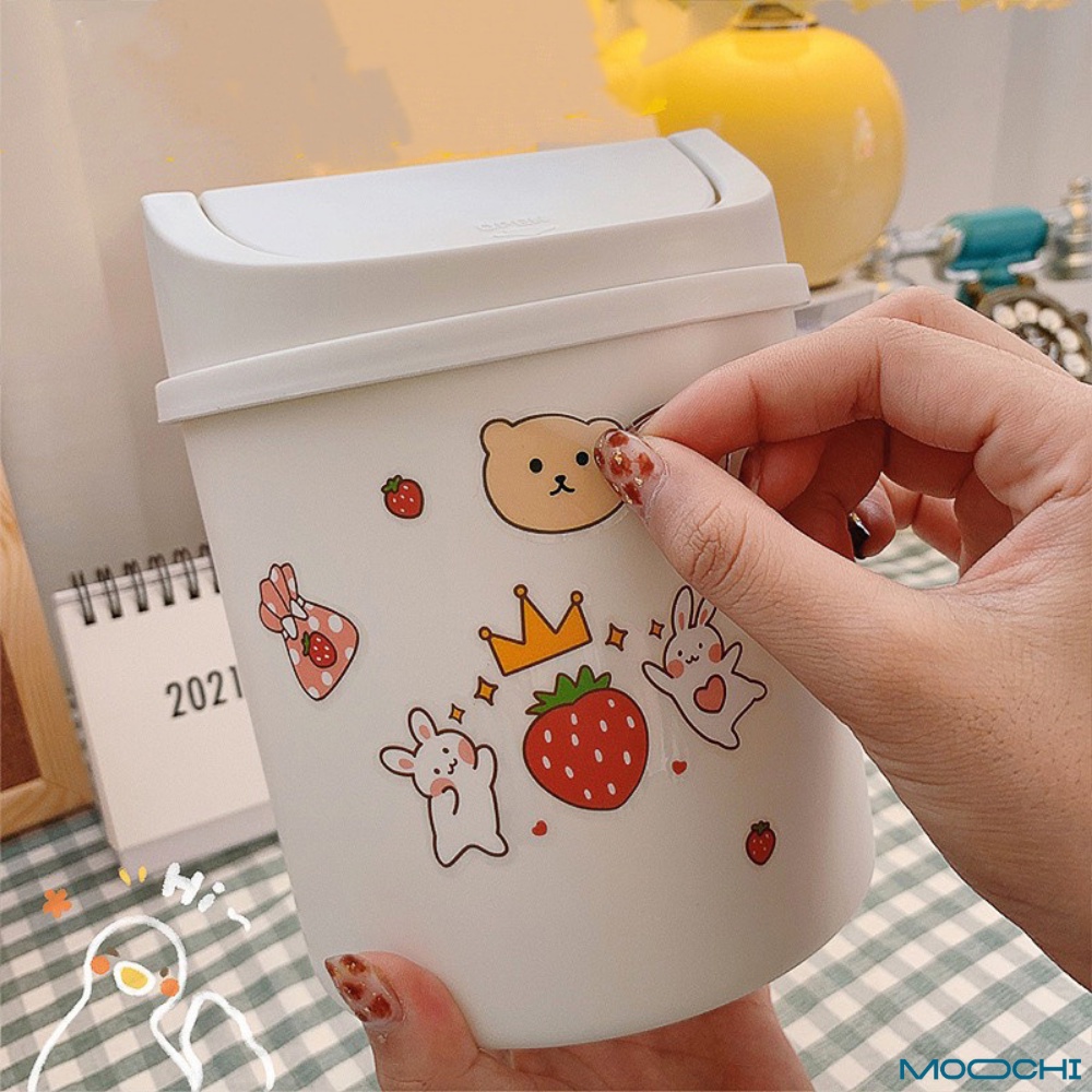 Thùng Rác Để Bàn Nắp Lật Tiện Lợi Gọn Gàng (Tặng Kèm Sticker Đáng Yêu)