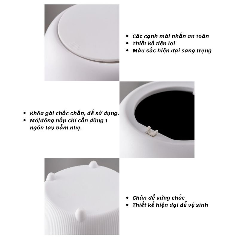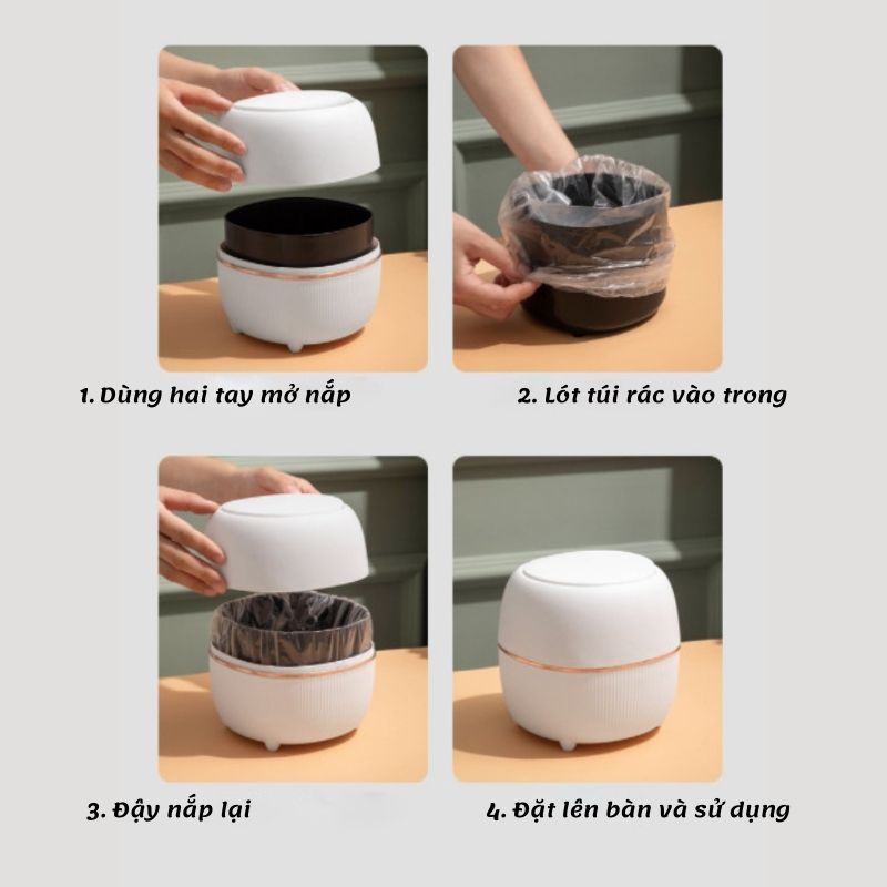 - Khi mở nắp thùng rác mini, thùng rác để bàn, dùng tay ấn xuống sau đó thả tay ra nắp thùng rác sẽ tự động bật lên.