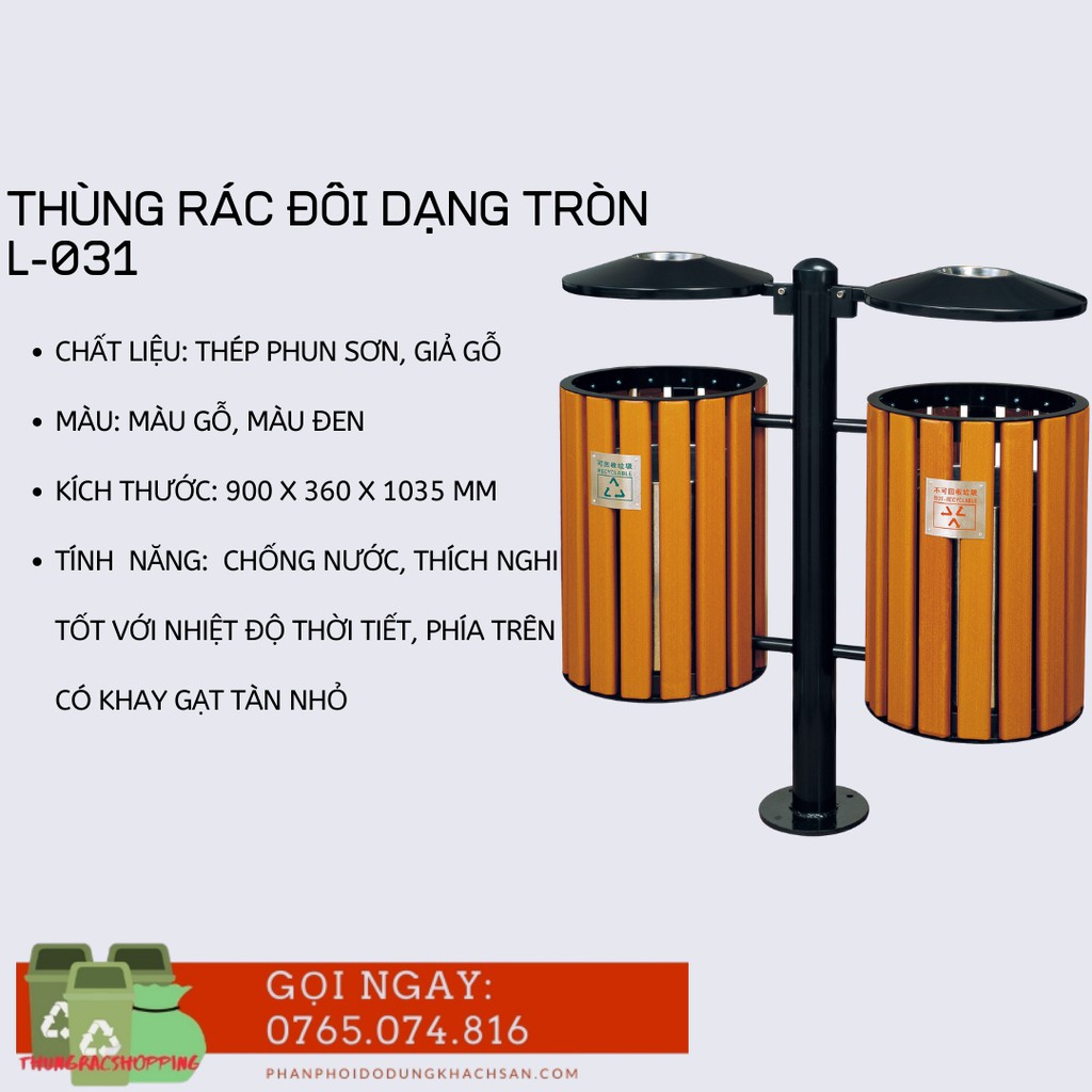 THÔNG TIN SẢN PHẨM THÙNG RÁC ĐÔI CÔNG CỘNG NGOÀI TRỜI DẠNG TRÒN L-031• Kích thước: 890 X 480 X 890 MM