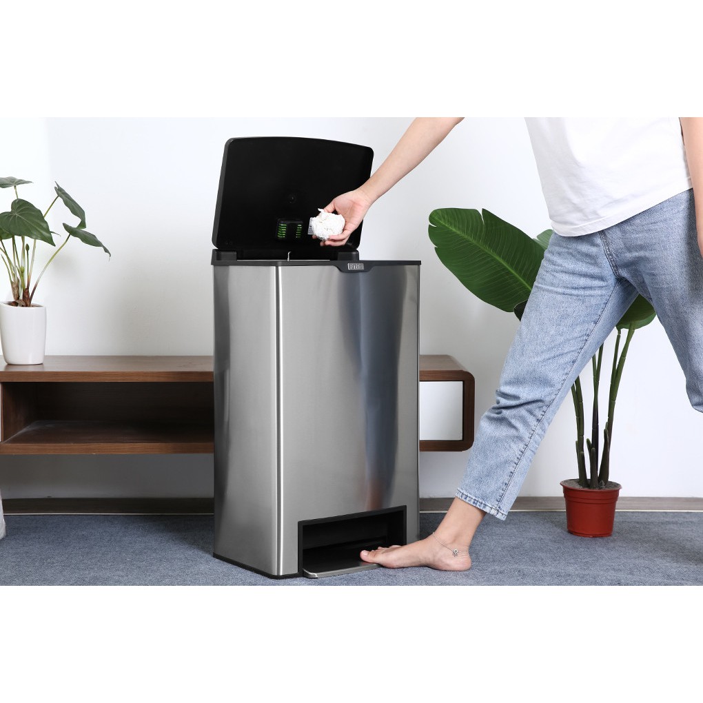 - Thiết kế bàn đạp vuông bên dưới thùng để bạn không cần phải dùng tay khi mở nắp thùng.