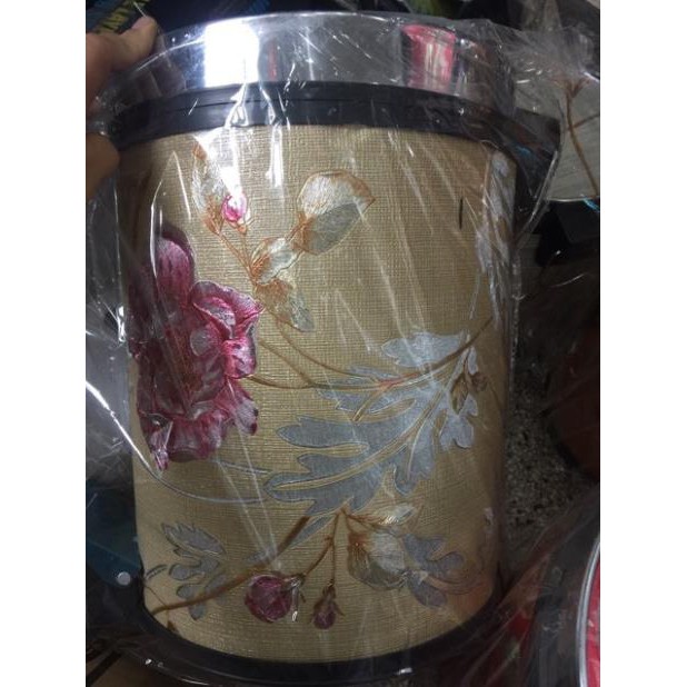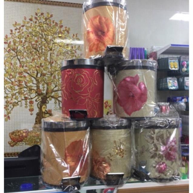 Thùng rác gấm hoa đạp chân màu sắc sang đẹp 2 cỡ GDTH