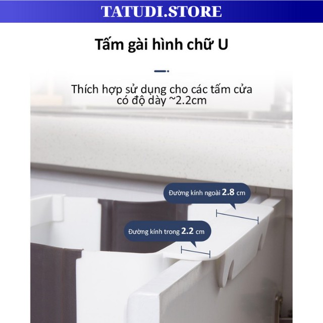 Thùng rác gấp gọn mini thông minh được thiết kế treo cánh tủ gấp gọn, rất phù hợp với tủ bếp trong Độ dày 2.2 cm