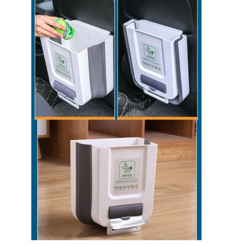 - Thùng rác độc đáo có thể gập gọn khi không sử dụng và mở ra khi dùng
