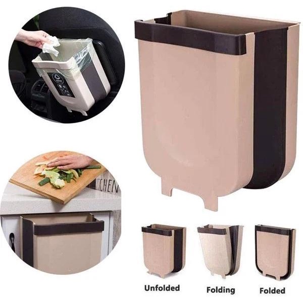 - Thùng rác độc đáo có thể gập gọn khi không sử dụng và mở ra khi dùng