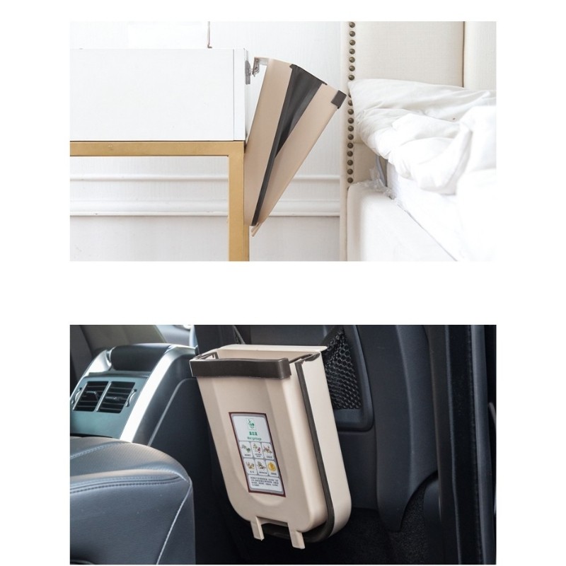 - Thùng rác độc đáo có thể gập gọn khi không sử dụng và mở ra khi dùng