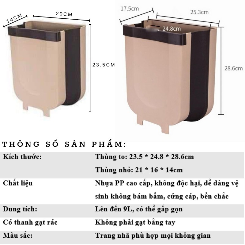 Thùng Rác Gấp Gọn Thông Minh Treo Cạnh Tủ 2 Size Tiện Lợi Full Box