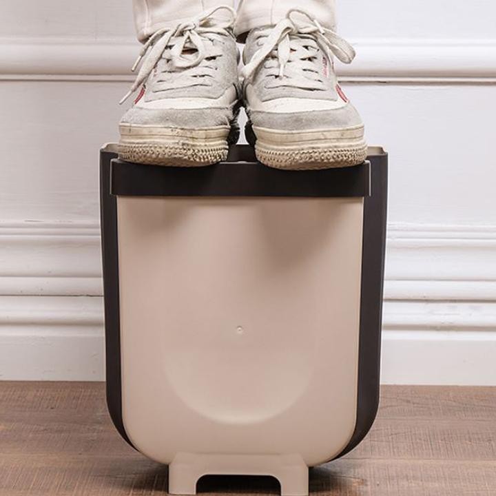 - Thùng rác độc đáo có thể gập gọn khi không sử dụng và mở ra khi dùng