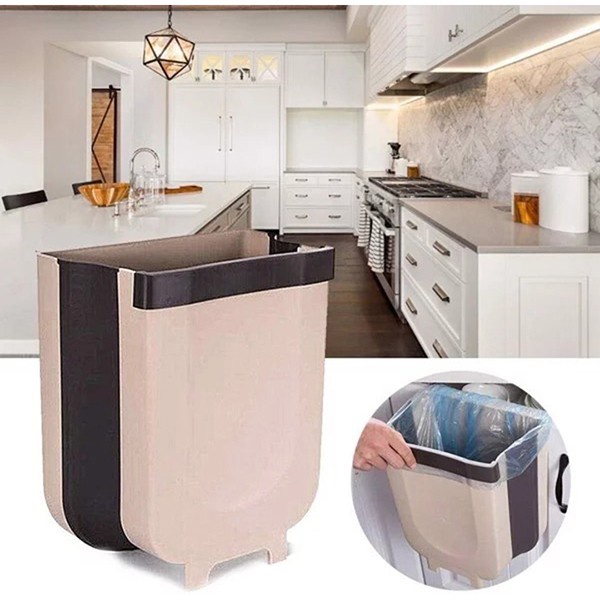 Thùng rác gấp gọn. Thùng rác treo cạnh tủ bàn bếp tiện lợi, gọn gàng, sạch sẽ